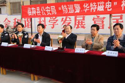 4月29日上午,由公司協(xié)辦的臨朐縣公安局“特巡警·華特磁電”杯慶五一籃球比賽在東城區(qū)吳家廟籃球場(chǎng)舉行。縣公安局政委張伯濤、縣公安局副局長(zhǎng)楊維護(hù),我公司董事長(zhǎng)兼總經(jīng)理王兆連出席開(kāi)幕式。王兆連董事長(zhǎng)在開(kāi)幕式上講話,代表公司向大賽表示祝賀并祝籃球賽圓滿成功。