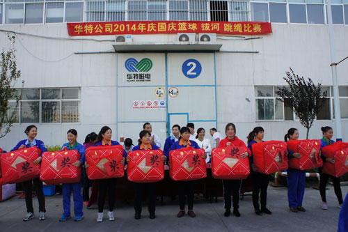 9月30日下午,為慶祝建國六十五周年,公司組織開展了大跳繩、籃球和拔河比賽。比賽中,參賽人員積極發(fā)揮,氣氛活躍,賽出了水平、賽出了風(fēng)格。比賽結(jié)束后,公司領(lǐng)導(dǎo)先后為優(yōu)勝者頒發(fā)了獎品。通過比賽,陶冶了廣大員工的思想情操,激發(fā)了大家的工作熱情。