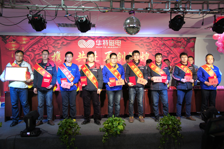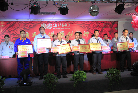 由公司董事長兼總裁王兆連作了《攜手共進(jìn) 再創(chuàng)輝煌》工作報告,對2016年度工作進(jìn)行了全面總結(jié)。2016年華特磁電公司更加發(fā)揚敢為人先的精神,優(yōu)化內(nèi)部管理能力,規(guī)劃創(chuàng)新發(fā)展戰(zhàn)略,公司上下一心,迎難而上,激流勇進(jìn),保持了良好的發(fā)展勢頭,在技術(shù)研發(fā)、生產(chǎn)制造、市場開拓方面有突破性進(jìn)展。在過去的一年里,涌現(xiàn)出很多優(yōu)秀團(tuán)隊和先進(jìn)個人,他們秉持著對個人品格的堅守和對業(yè)務(wù)能力的追求,勤奮努力,力爭上游,是華特蓬勃向上的模范代表。提出了2017年的發(fā)展思路和工作計劃,明確了2017年的奮斗目標(biāo),令人鼓舞,振奮人心。
