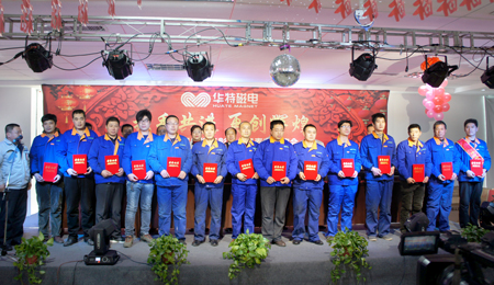 由公司董事長王兆連、常務(wù)副總裁劉風(fēng)亮、生產(chǎn)中心總經(jīng)理劉西軍為2016年度獲得華特工匠、高級技師、技師的25位員工分別頒發(fā)榮譽(yù)證書。