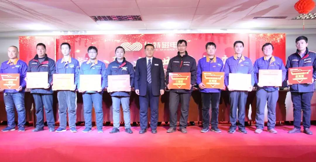 公司董事長(zhǎng)兼總裁王兆連在為受表彰技工頒獎(jiǎng)時(shí)表示,優(yōu)秀技工是推動(dòng)華特磁電發(fā)展的不竭動(dòng)力,對(duì)他們進(jìn)行表彰是為了進(jìn)一步凸顯其地位及作用,彰顯“典型示范”的帶動(dòng)作用,引導(dǎo)所有員工“學(xué)技術(shù)、敢創(chuàng)造、比貢獻(xiàn)”。公司將繼續(xù)實(shí)行對(duì)獲得縣級(jí)及以上獎(jiǎng)勵(lì)的員工公司配套獎(jiǎng)勵(lì)50%的政策,鼓勵(lì)員工勇攀技術(shù)高峰。
