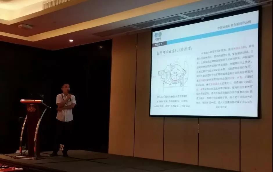 華特公司高級(jí)選礦工程師安峰文作為特邀嘉賓,在本次大會(huì)上作《新型節(jié)能環(huán)保磁電選礦裝備的研究與應(yīng)用》的主題報(bào)告,綜合性地闡述了當(dāng)前國內(nèi)外超細(xì)粒級(jí)礦石加工利用現(xiàn)狀,并向與會(huì)人員詳細(xì)介紹了華特選礦裝備的研發(fā)與應(yīng)用情況,引起現(xiàn)場與會(huì)人員的熱烈反響。