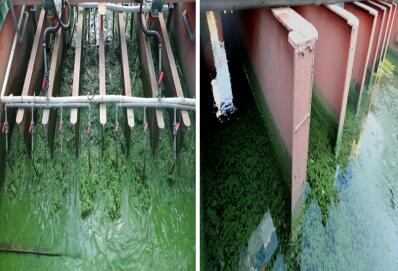 藍(lán)藻在進(jìn)入槽道并在槽道絮凝