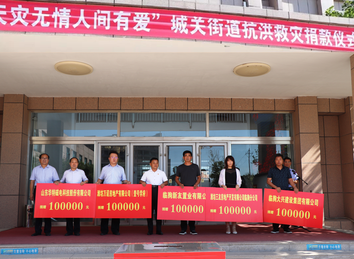 一方有難,八方支援;眾志成城,重建家園。作為一家具有高度社會責(zé)任感的國家級高新技術(shù)企業(yè),華特公司始終秉承“取之于社會、用之于社會、反哺于社會”理念,歷年來累計(jì)為社會各界捐款1600多萬元,用于助學(xué)、助教、筑路架橋、家鄉(xiāng)基礎(chǔ)設(shè)施建設(shè)、抗災(zāi)救災(zāi)等,先后榮獲“全國光彩之星”“濰坊愛心慈善企業(yè)”等多項(xiàng)榮譽(yù)稱號。天災(zāi)無情,面對這場突如其來的災(zāi)難,華特人責(zé)無旁貸,積極響應(yīng)各級黨委政府災(zāi)后重建工作的部署要求,向受災(zāi)地區(qū)提供人、財(cái)、物各方面的支持,盡最大努力幫助災(zāi)區(qū)人民克服困難,為災(zāi)區(qū)人民重建家園貢獻(xiàn)綿薄之力。我們相信在臨朐縣委、縣政府和城關(guān)街道黨工委、辦事處的正確領(lǐng)導(dǎo)和積極應(yīng)對下,在各級各部門各行業(yè)和社會各界人士的共同努力下,一定能打贏這場水毀重建攻堅(jiān)戰(zhàn),建設(shè)美麗新家園。