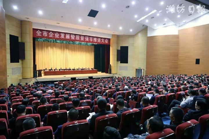 2019年11月15日,全市企業(yè)發(fā)展暨質(zhì)量強(qiáng)市推進(jìn)大會(huì)在濰坊市工人文化宮中心會(huì)堂舉行。會(huì)議深入貫徹中央支持企業(yè)高質(zhì)量發(fā)展的一系列部署,進(jìn)一步落實(shí)省委、省政府支持企業(yè)家干事創(chuàng)業(yè)、促進(jìn)企業(yè)發(fā)展的若干措施,共商企業(yè)高質(zhì)量發(fā)展大計(jì),政企攜手、并肩戰(zhàn)斗,推動(dòng)企業(yè)加快轉(zhuǎn)型升級(jí)、盡快做大做強(qiáng)。市委書記、市人大常委會(huì)主任惠新安出席會(huì)議并講話,市委副書記、市長田慶盈主持,市領(lǐng)導(dǎo)蘇立科、林紅玉、劉建國、劉國偉、王兆輝、李蘭祥、孫明亮、王樹華、范福生出席。