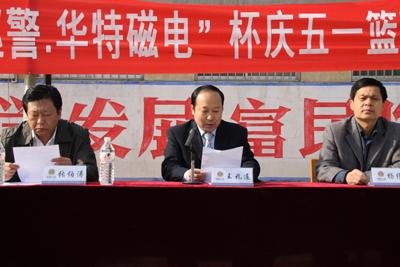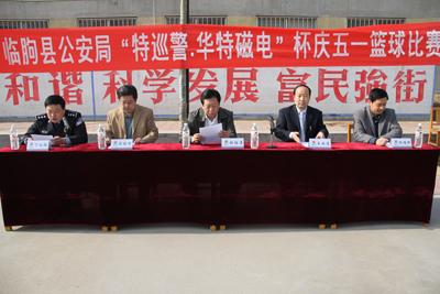 4月29日上午,由公司協(xié)辦的臨朐縣公安局“特巡警·華特磁電”杯慶五一籃球比賽在東城區(qū)吳家廟籃球場(chǎng)舉行。縣公安局政委張伯濤、縣公安局副局長(zhǎng)楊維護(hù),我公司董事長(zhǎng)兼總經(jīng)理王兆連出席開(kāi)幕式。王兆連董事長(zhǎng)在開(kāi)幕式上講話,代表公司向大賽表示祝賀并祝籃球賽圓滿成功。