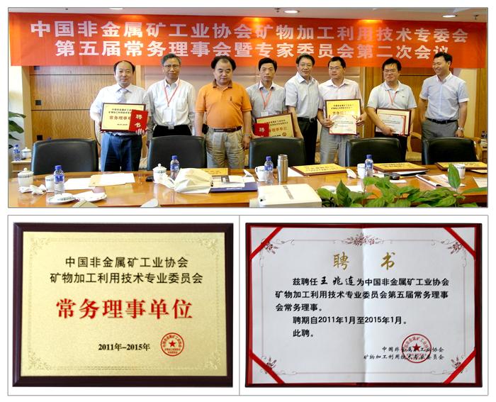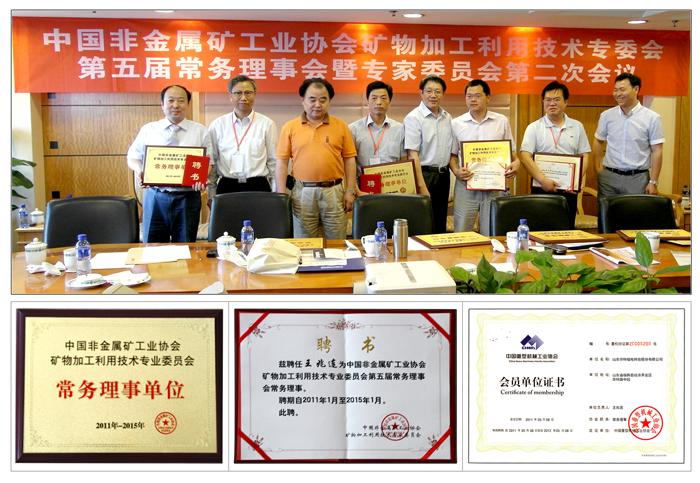 2011年5月15日,中國(guó)非金屬礦工業(yè)協(xié)會(huì)礦物加工利用技術(shù)專(zhuān)業(yè)委員會(huì)第五屆常務(wù)理事會(huì)和專(zhuān)家委員會(huì)第二次會(huì)議在長(zhǎng)沙金源大酒店召開(kāi)。會(huì)議批準(zhǔn)聘任我公司董事長(zhǎng)兼總經(jīng)理王兆連為中國(guó)非金屬礦工業(yè)協(xié)會(huì)礦物加工利用技術(shù)專(zhuān)業(yè)委員會(huì)第五屆常務(wù)理事會(huì)常務(wù)理事,并批準(zhǔn)我公司為常務(wù)理事單位。至此,我公司已分別加入濰坊市循環(huán)經(jīng)濟(jì)與新能源發(fā)展促進(jìn)會(huì)、濰坊市工業(yè)技術(shù)研究會(huì)、山東省發(fā)明協(xié)會(huì)、山東省光彩事業(yè)促進(jìn)會(huì)、中國(guó)重型機(jī)械工業(yè)協(xié)會(huì)、中國(guó)重型機(jī)械工業(yè)協(xié)會(huì)洗選設(shè)備專(zhuān)業(yè)委員會(huì)、中國(guó)重型機(jī)械工業(yè)協(xié)會(huì)破碎粉磨設(shè)備專(zhuān)業(yè)委員會(huì)、中國(guó)重型機(jī)械工業(yè)協(xié)會(huì)礦山機(jī)械分會(huì)、中國(guó)重型機(jī)械工業(yè)協(xié)會(huì)帶式輸送機(jī)協(xié)會(huì)、全國(guó)礦山機(jī)械標(biāo)準(zhǔn)化技術(shù)委員會(huì)等組織,成為其會(huì)員、理事、常務(wù)理事、副理事長(zhǎng)單位。
