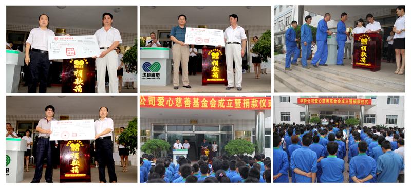 8月1日,公司工會(huì)、黨支部、團(tuán)委發(fā)起成立華特愛(ài)心慈善基金會(huì)并舉行捐款儀式。公司各位股東、領(lǐng)導(dǎo)、員工踴躍捐款,其中,臨沂潤(rùn)興投資有限公司捐款10萬(wàn)元,公司董事長(zhǎng)兼總經(jīng)理王兆連個(gè)人捐款10萬(wàn)元,公司各位領(lǐng)導(dǎo)、員工捐款5萬(wàn)余元。在捐款儀式上,王兆連董事長(zhǎng)還代表公司愛(ài)心慈善基金會(huì)向臨朐大陡溝小學(xué)捐款2萬(wàn)元。