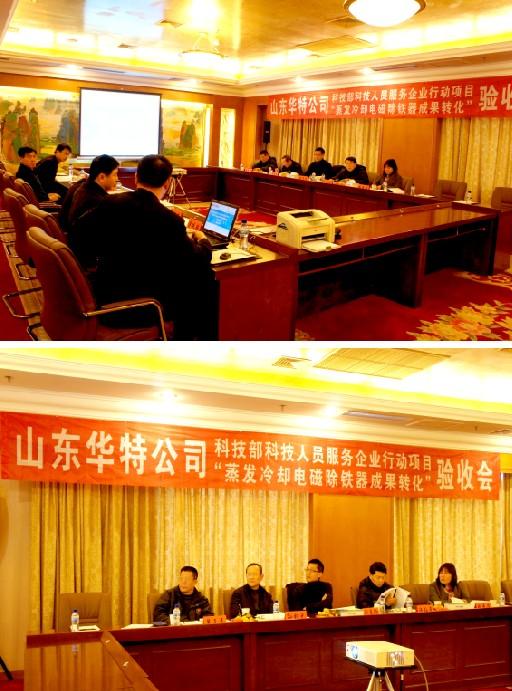2012年3月4日,受省科技廳委托,市科技局組織專家在濰坊召開了由我公司承擔的“蒸發(fā)冷卻電磁除鐵器成果轉(zhuǎn)化”科技部科技人員服務(wù)企業(yè)行動項目(2009GJC60005)驗收會。在聽取我公司工作匯報、審查相關(guān)材料、經(jīng)質(zhì)詢和討論后,驗收專家組認為:項目承擔單位完成了項目任務(wù)書規(guī)定的各項指標,一致同意通過驗收。