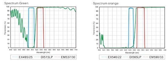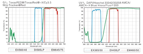 選用進口高性能熒光濾光片,光譜透過率高,并具有良好的譜線截止深度與陡度。濾片無穿色現(xiàn)象,具有極高的信噪比,熒光成像襯度大幅提升。濾光塊采用背景雜光消除技術(shù),觀察時呈現(xiàn)圖片與背景的超高對比度,達(dá)成最佳觀察效果。