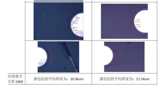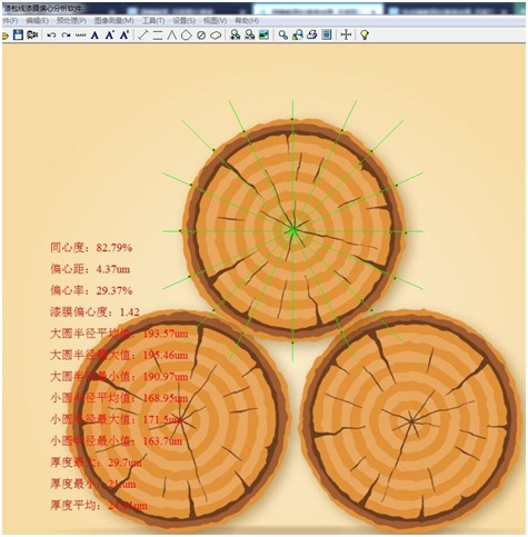 根據(jù)試樣的形貌,尺寸等等選擇對(duì)應(yīng)的顯微鏡物鏡進(jìn)行成像,使用漆包線漆膜偏心度分析軟件測(cè)量其偏心度數(shù)據(jù)并進(jìn)行檢測(cè)報(bào)告輸出;