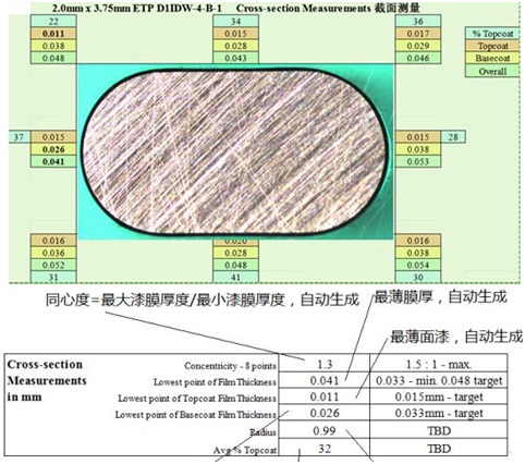 漆包線漆膜、光伏焊帶(圓形涂層)等產(chǎn)品覆蓋層偏心度檢