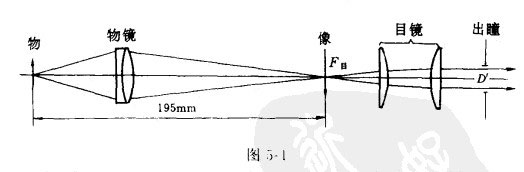 我國規(guī)定為195mm。所以顯微物鏡的倍率越高,焦距越短。另有一種所謂“無限筒長”的顯微物鏡,被觀察物體通過物鏡以后,成像在無限遠,在物鏡的后面,另有一固定不變的鏡簡透鏡,再把像成在日鏡的焦面上.如圖5-2所示。