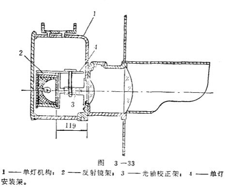 1.用光軸校正架調(diào)整燈碗位置(參見圖3-33)。