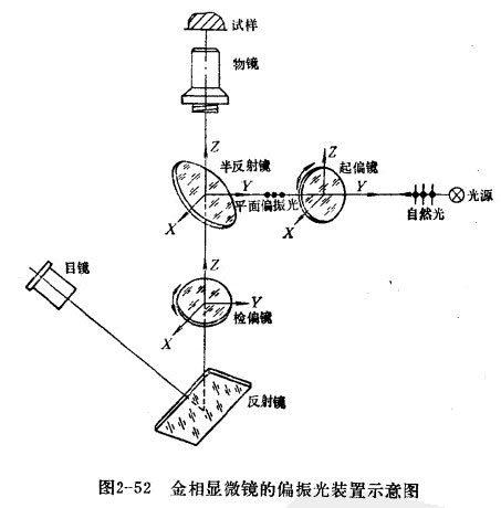 一般金相顯微鏡中的偏振光裝置,只是在入射光程中及觀察鏡筒內(nèi)各加入一塊質(zhì)量甚佳的人造偏振片(圖2-52是其示意圖)。