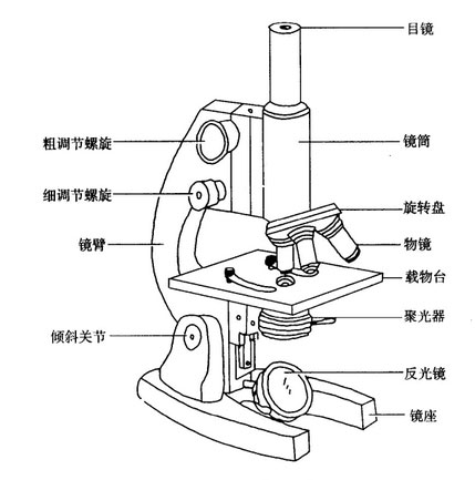 6)旋轉(zhuǎn)盤:為安裝在鏡簡下端的圓盤。旋轉(zhuǎn)盤下方裝有2-4個物鏡,轉(zhuǎn)動旋轉(zhuǎn)盤,可調(diào)換物鏡。